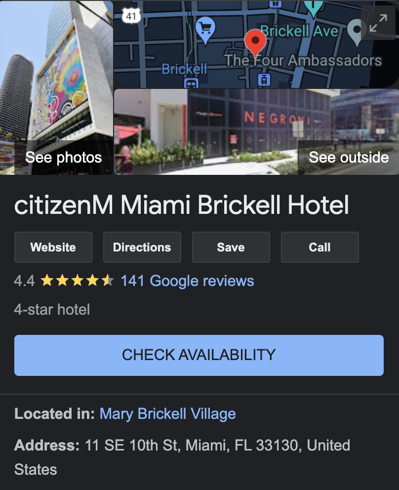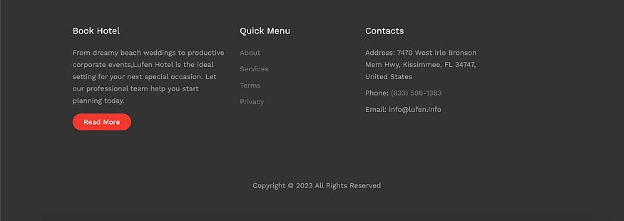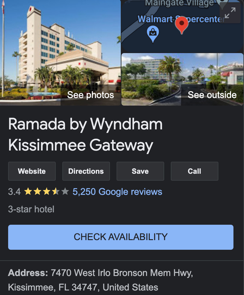 None of the buttons are clickable and nothing is actually reservable from the sites. At the bottom, one dead giveaway these are indeed scams — the addresses, all in Florida, were stolen from real hotels: