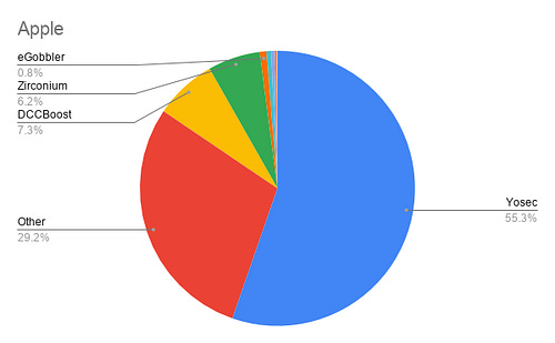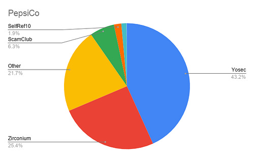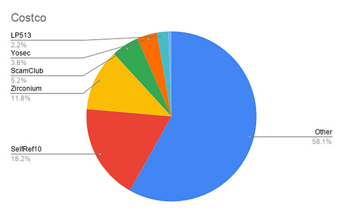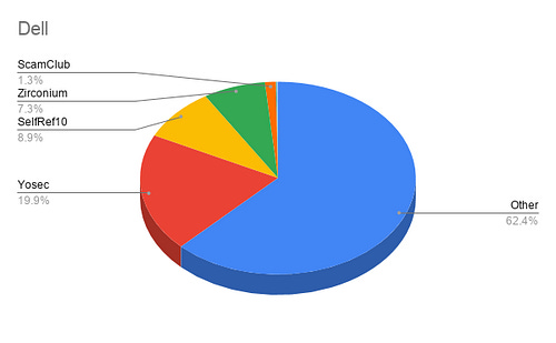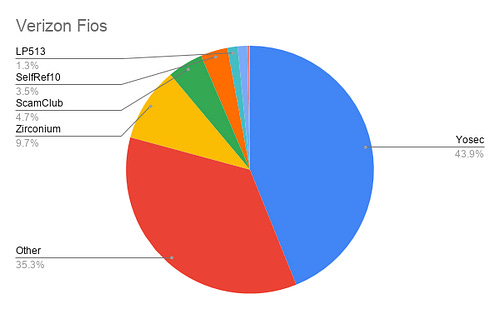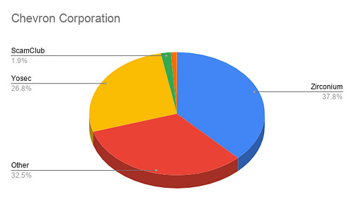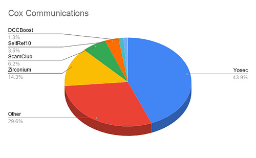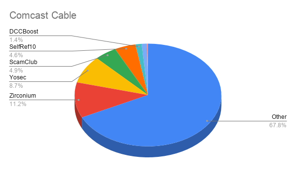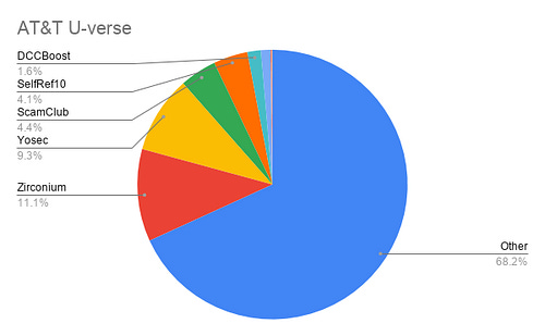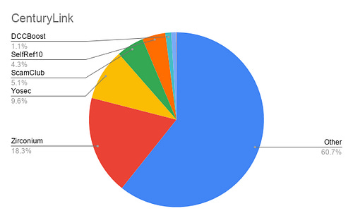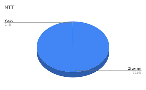 Let’s look at the most obvious outlier here — NTT. The Nippon Telegraph and Telephone Corporation is among the largest telecom companies in the world, and of the incidents blocked on their network for the given time period, 99.9% are comprised of Zirconium malvertisements!