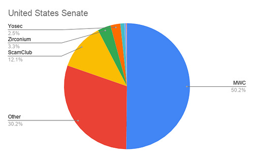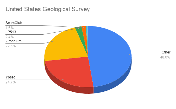 What does it mean that the United States Geological Survey has been hit by Zirconium 22.5% vs the United States Senate’s 3.3%? Does it mean that Zirconium are actively attacking the Geological Survey with tech support scams?