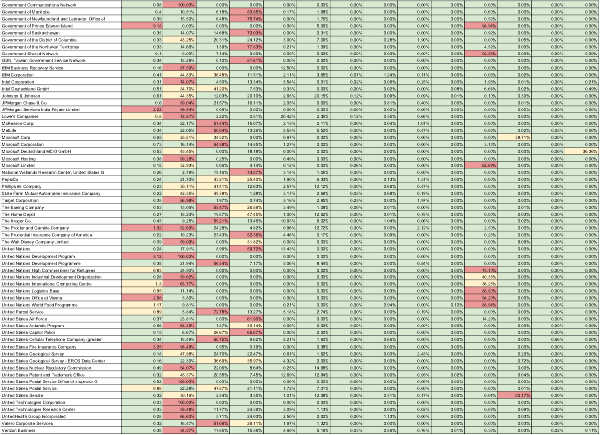 Most of the malvertising disclosures we have done to date have centered around attacker infrastructure, exploits, and IOCs. In this blog post we will explore the threat of malvertising from the other end of the tunnel and look at what organizations are being disproportionately targeted in these attacks as well as which threats they are the most likely to face. Our focus will be on Fortune 100 corporations as well as government institutions, and ISPs.