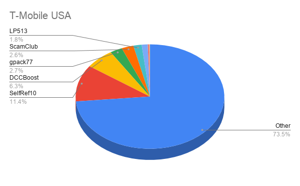 We can make similar observations with Wind Tre — an Italian telecom operator. 87.1% of the incidents blocked on their network are attributed to gpack77. It’s clear that this attacker is quite underrepresented in the breakdown of most US based providers, but mobile users on this EU based provider are overexposed to their campaigns.