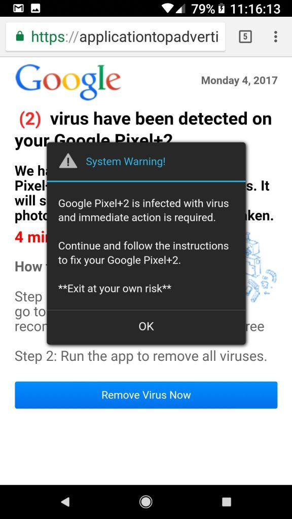 The copy on this page happens to be device specific, and will ultimately lead to an actual malware install.
