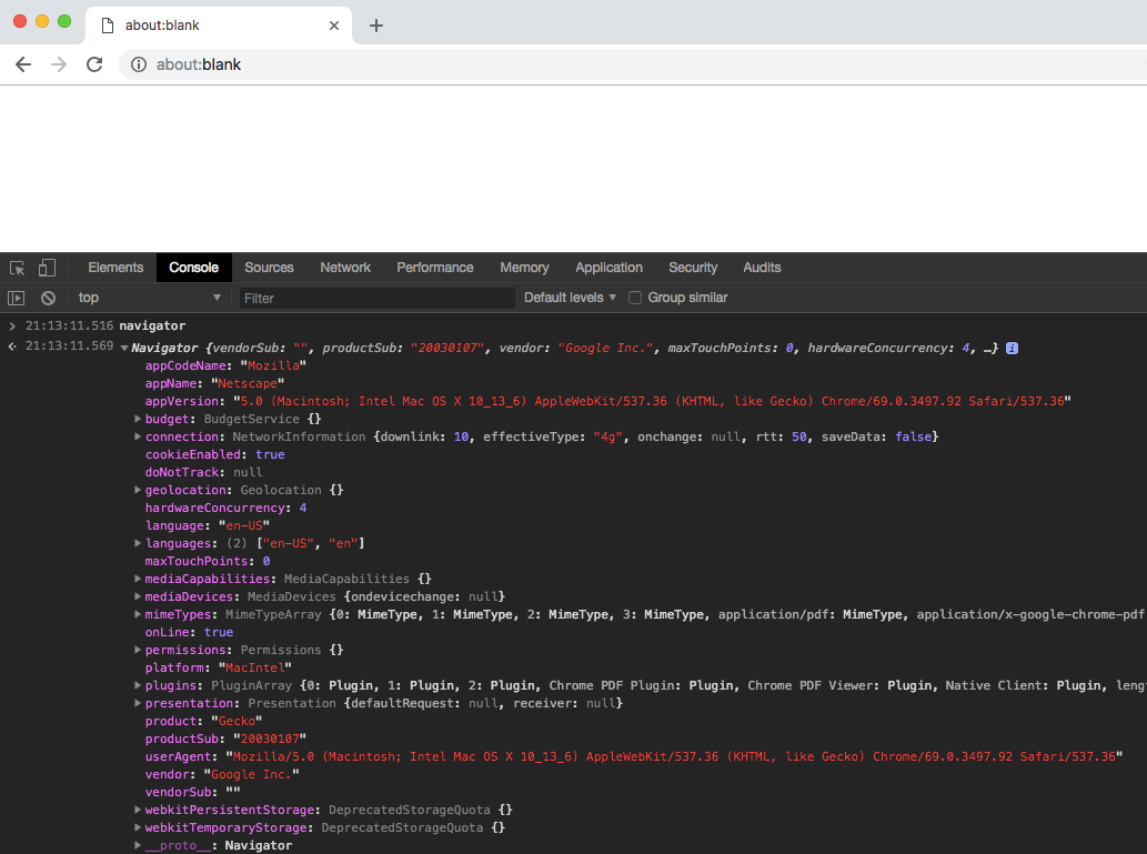 Fortunately for folks trying to track you, the modern web browser has a ton of metadata that’s easily accessible on the client-side via Javascript. Here’s the partial output of the Navigator object alone: