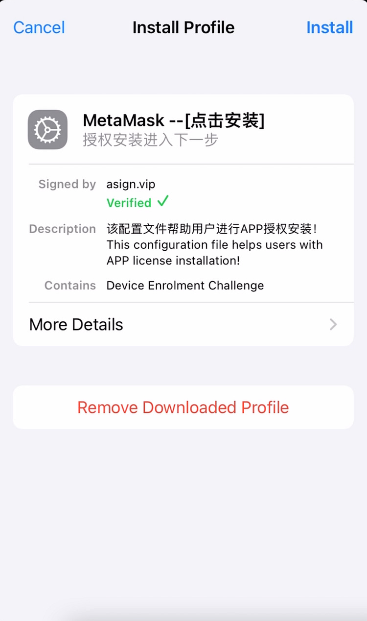 Never install or accept random provisioning profiles on your iPhone, as you saw in this blog post, they allow the download of unverified software that could potentially steal your crypto.