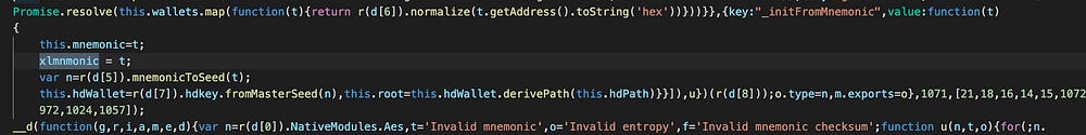 MetaMask for mobile is a React native app, meaning it can run on both iOS and Android. The first signs of backdoor code can be found at the main.jsbundle.