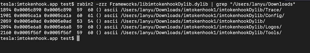 similar to the Coinbase iOS wallet, one .dylib libimtokenhookDylib.dylib was injected: