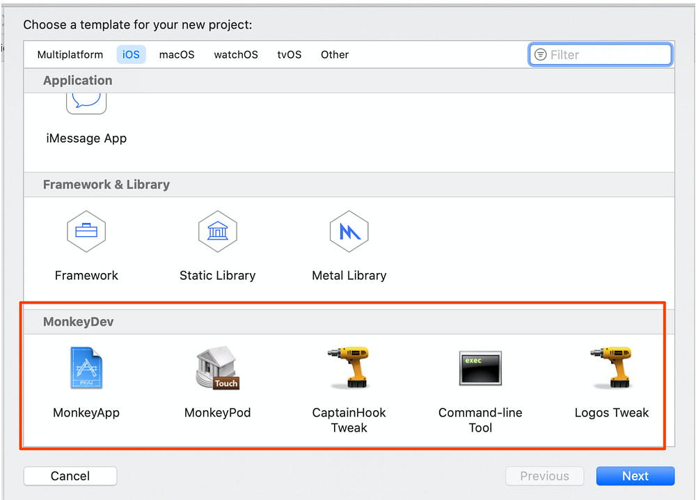 I’ve found multiple references to MonkeyDev Framework which is a hooking & modding utility written by AloneMonkey. MonkeyDev has custom Xcode templates https://github.com/AloneMonkey/MonkeyDev-Xcode-Templates which make it fully integrated to Xcode during the development cycle of these backdoors!