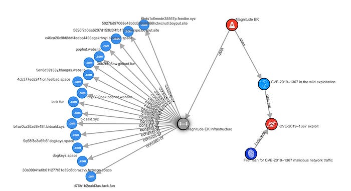 STIX v2.1 graph of Magnitude EK exploiting CVE-2019–1367 (jan-jun2020)