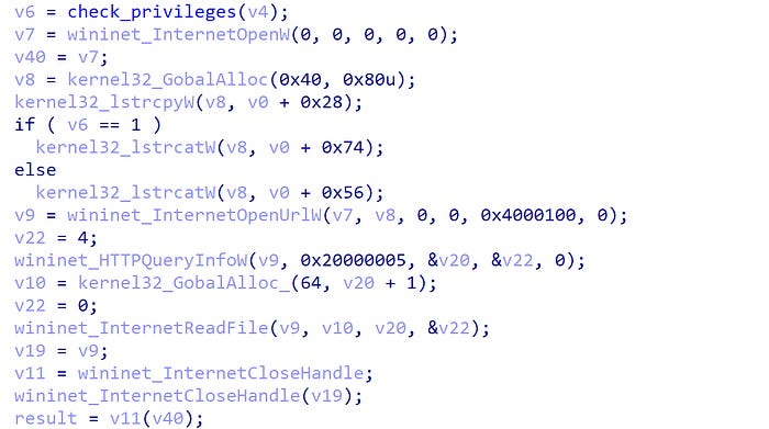 Once the current privileges are checked, an HTTP request is created to download a payload: