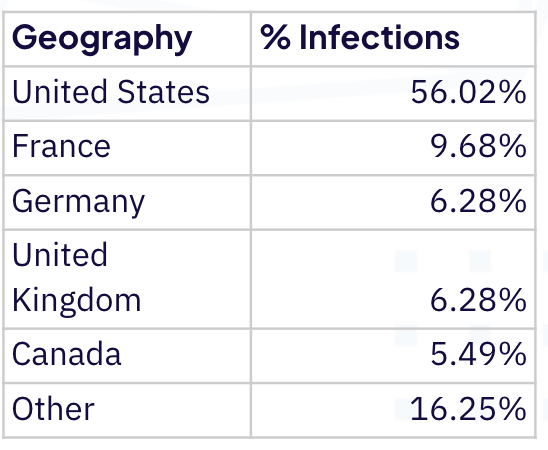 and allowed us to determine the infection % between home networks and enterprise networks during Q1-Q3 2022:
