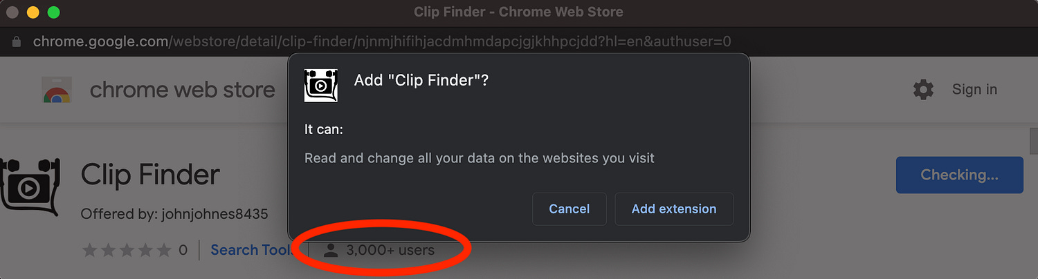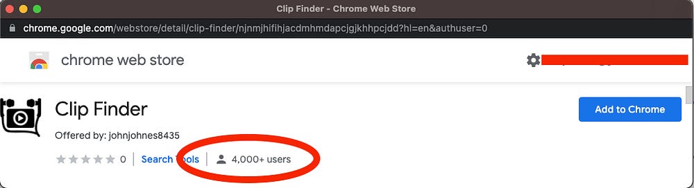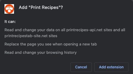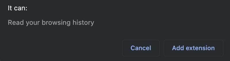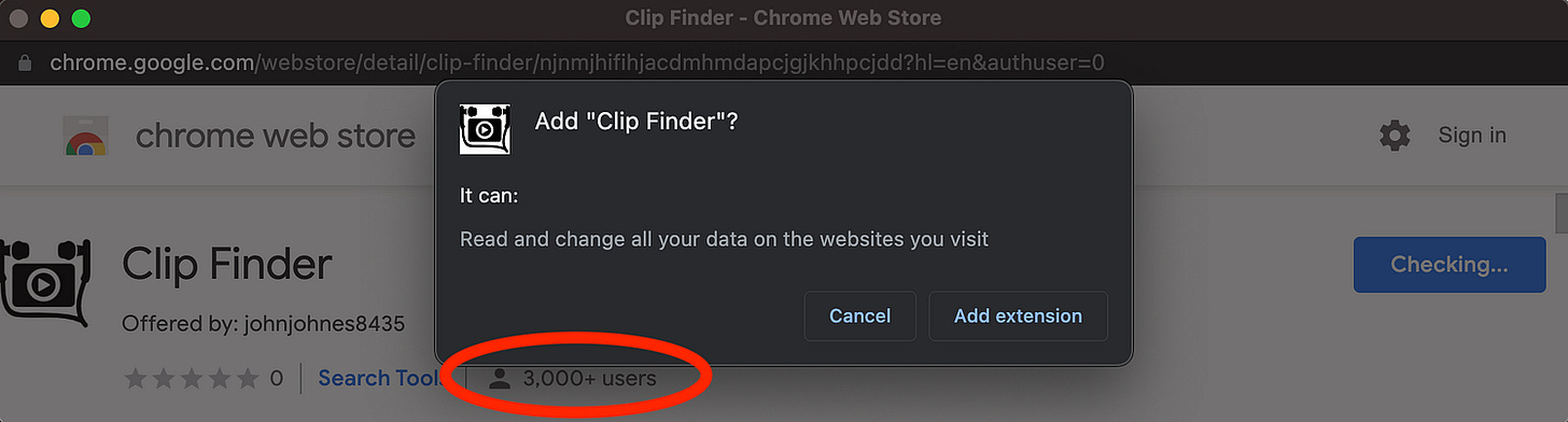 Earlier in the blog post we posted a screenshot of the modal that Google serves up after a user clicks the “Add To Chrome” button on these extensions.