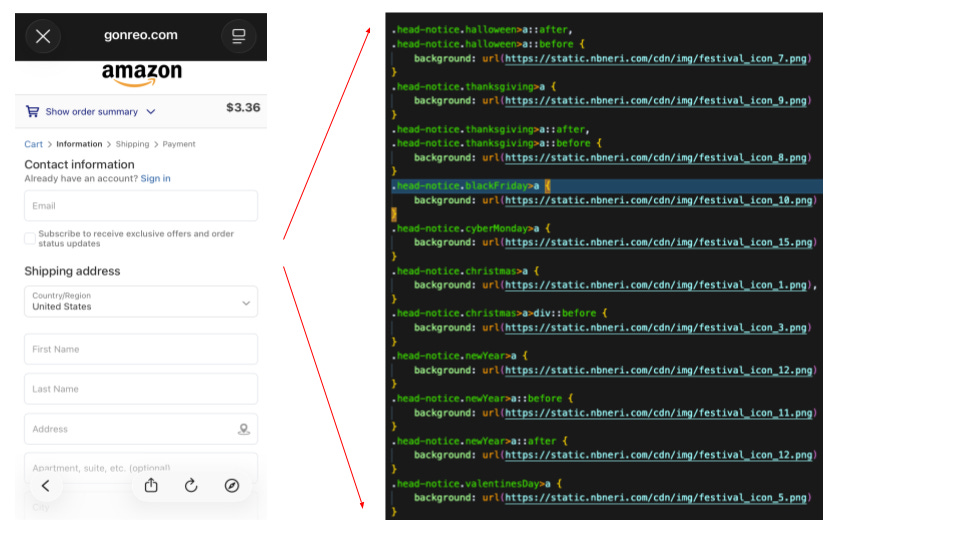 These selectors indicate that the campaign is designed for year-round operation, capable of being “re-skinned” instantly by changing a parent class on the <body> tag. This Holiday Skins capability allows the attacker to run a Halloween scam in October, a Black Friday scam in November, and a Christmas scam in December pretty easily- creating a continuous, year-round operation.