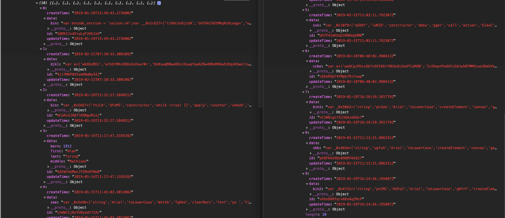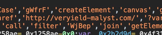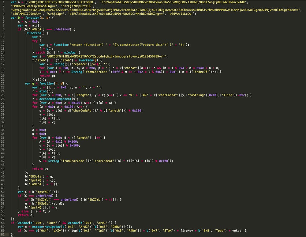 A closer look at the payload returned from Firestore reveals what can be described as a more traditional looking malvertising payload with elements of fingerprinting and obfuscation: