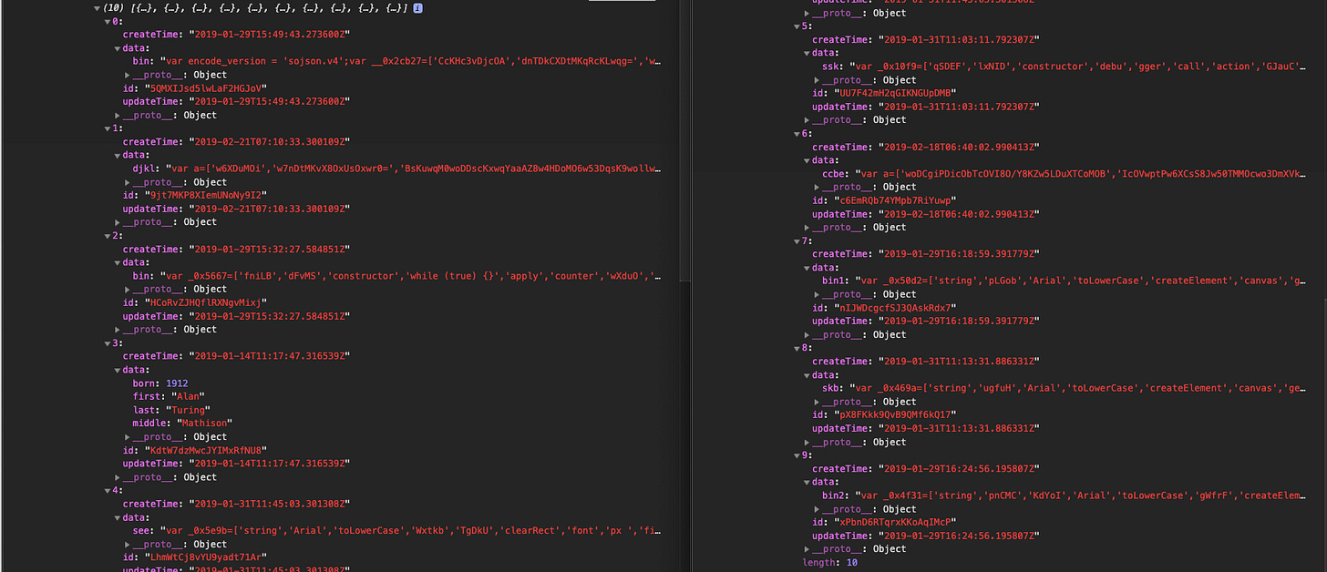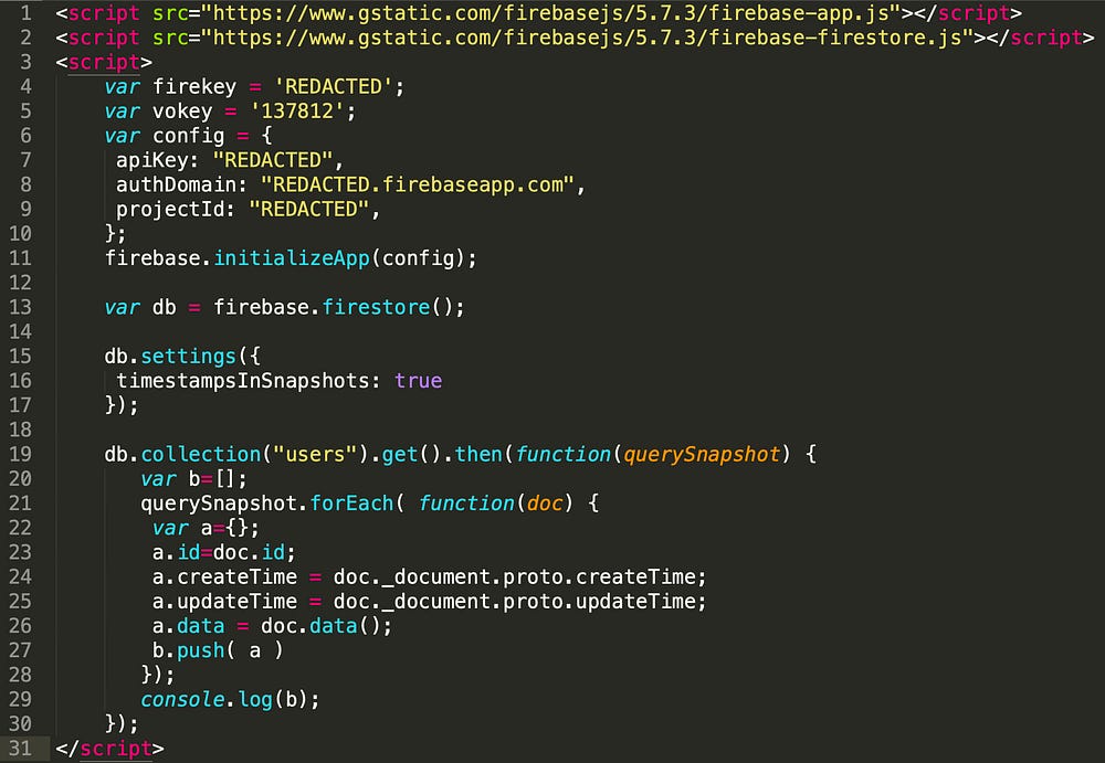 if(doc.id==’c6EmRQb74YMpb7RiYuwp’){Maybe there are other documents these folks have concealed in their Firestore DB? With our grey hat on and a few modifications to their tag, we should be able dump all the entries in their DB instance.