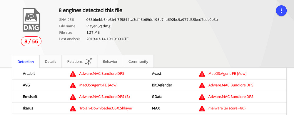 Our last and final check is to upload the Flash update binary to VirusTotal for confirmation that this is the same Shlayer malware that we have been tracking.