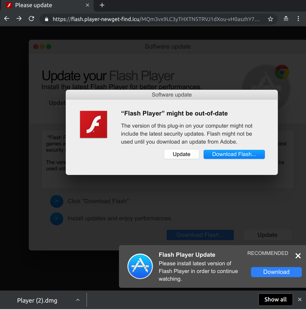 The bad actor is known for running large scale fake Flash update campaigns that are hosted on .icu domains by way of display ad auto-redirects: