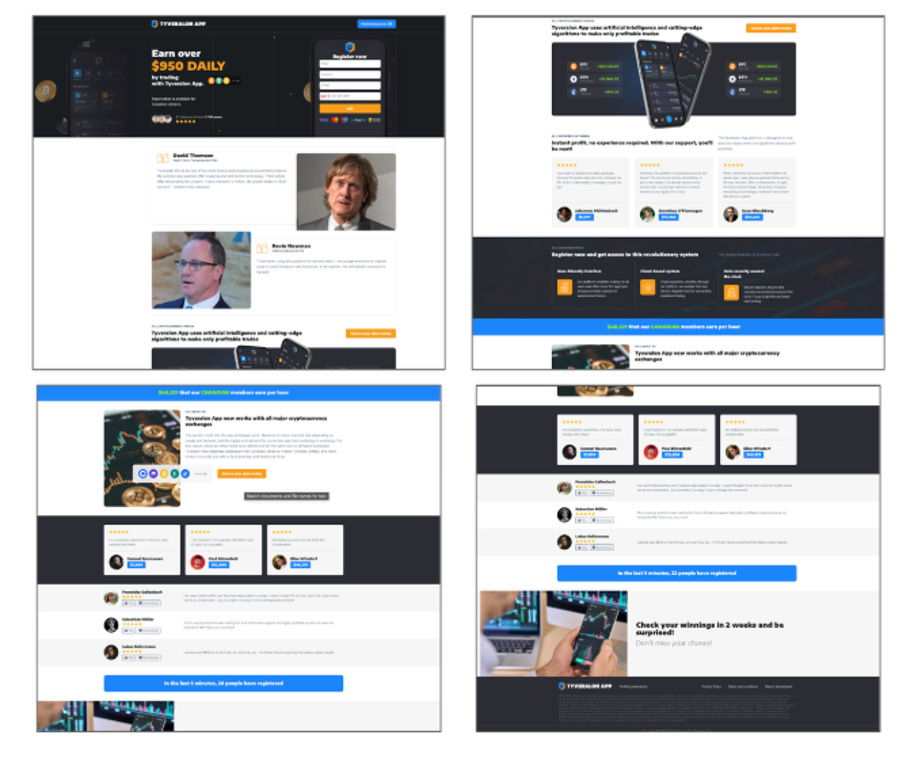 Investment scams dominated. The pattern is consistent across actors: algorithmically registered domains, uniform web forms to capture victim contact details, fabricated news articles or endorsements to establish credibility.