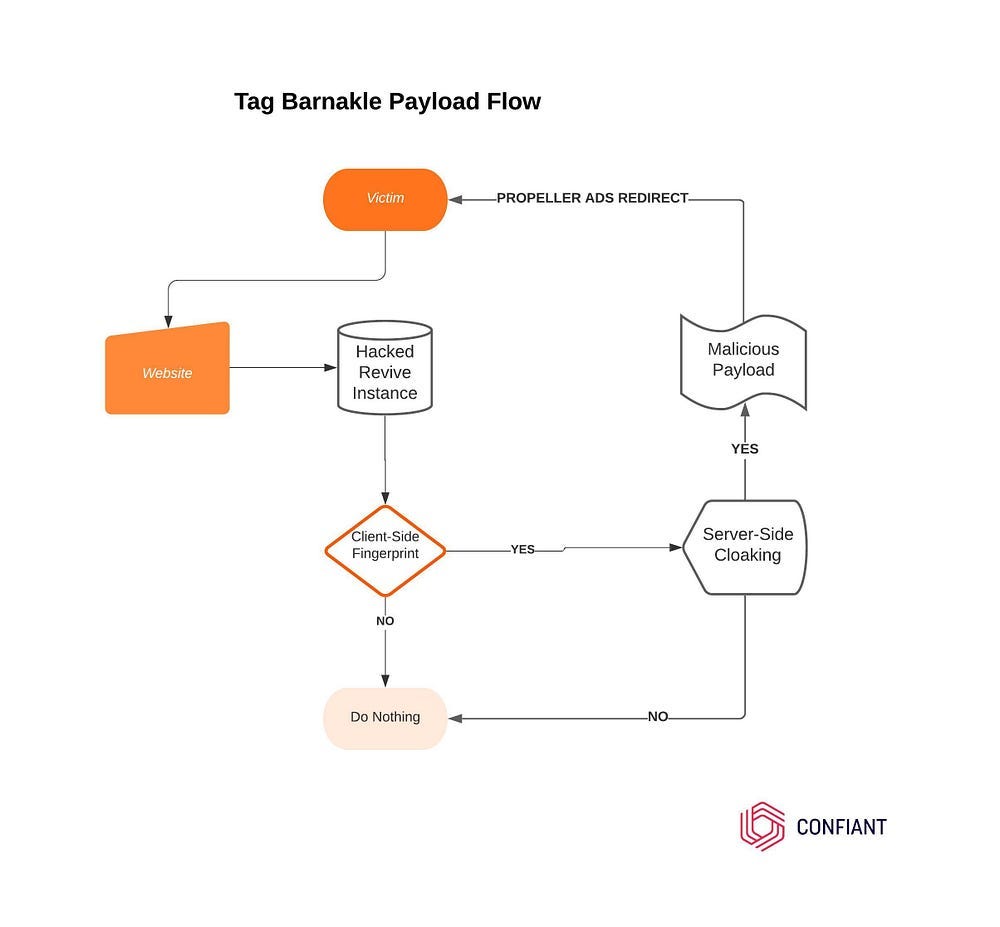 Tag Barnakle on the other hand, is able to bypass this initial hurdle completely by going straight for the jugular — mass compromise of ad serving infrastructure. Likely, they’re also able to boast an ROI that would eclipse their rivals as they don’t need to spend a dime to run ad campaigns.