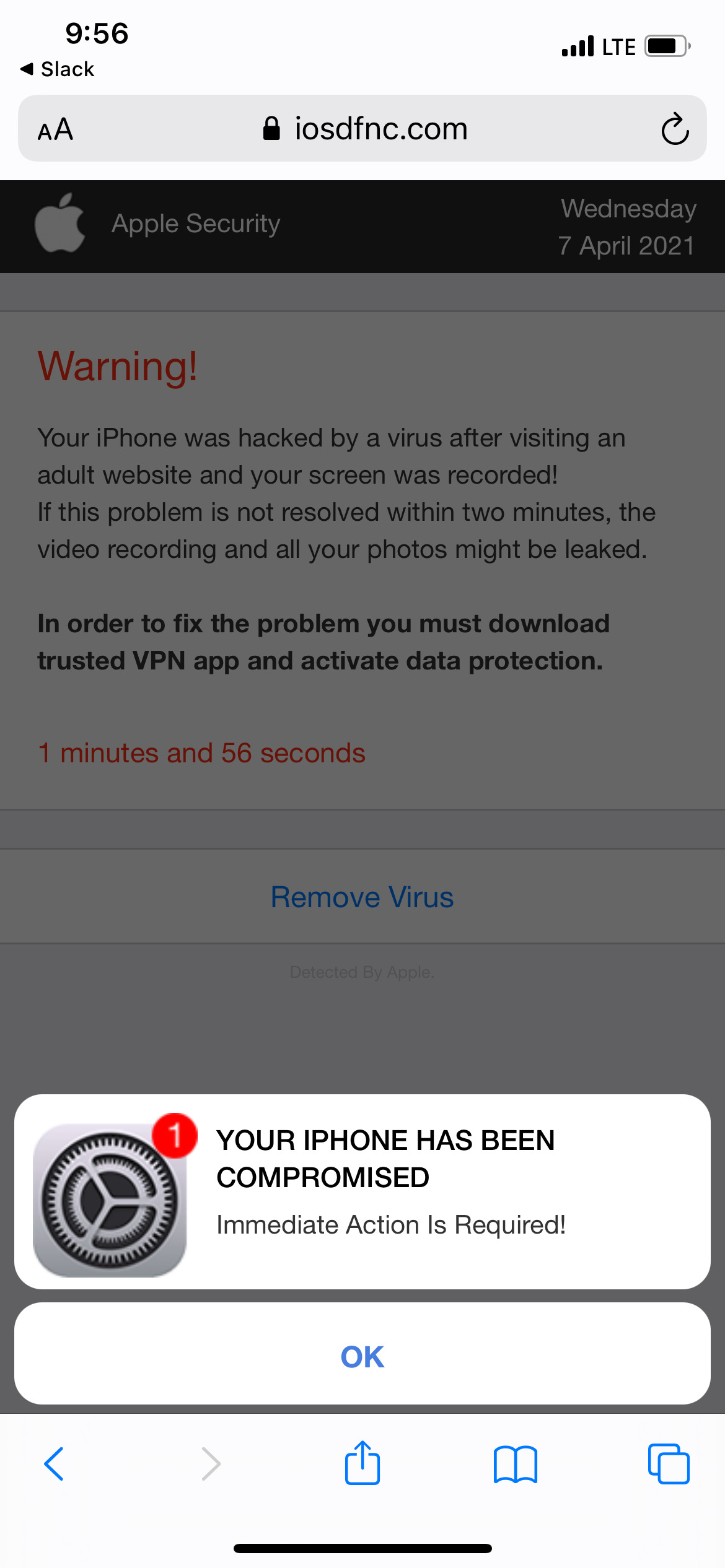 Most of these campaigns are going to lure the victim to the app store listing for obscure Security / Safety / VPN apps that are loaded with hidden subscription costs or siphon off traffic for nefarious ends.